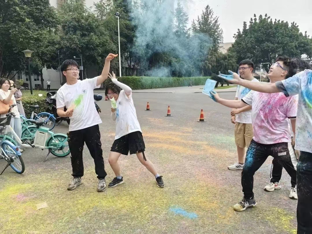 呐喊与欢呼交织,色彩与青春碰撞。彩色的粉末随风飘扬,所有参与者们都沉浸在缤纷的海洋,此刻阳光正好,此时青春飞扬。此次活动不仅展示了同学们朝气蓬勃的精神风貌,更激发了大家对生活的热情,传递了积极的情绪价值,使同学们在繁忙的学业中放松心灵、拥抱健康。对毕业生而言,本次彩虹跑活动是对他们老员工活的最后一个总结,象征着他们在老员工活中的种种成长,缤纷多彩的老员工活给他们的人生留下了不可磨灭的印记。毕业不是结束,而是另一片天地的开始。一个个追梦少年飞扬着青春色彩,拥抱未来!
