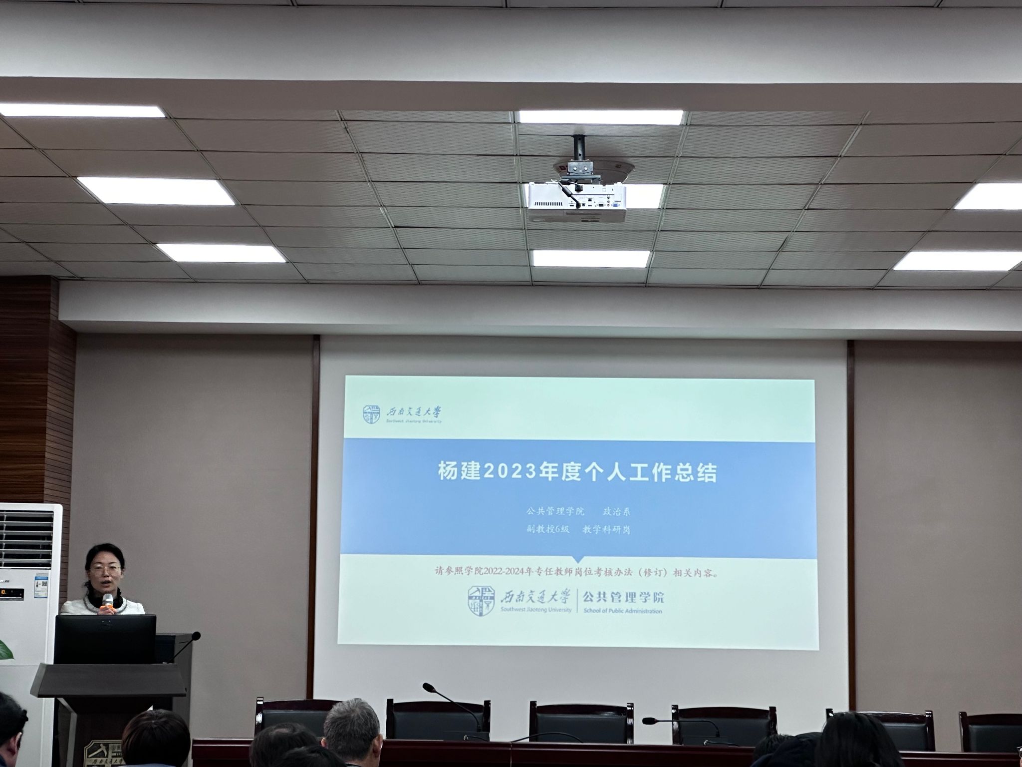 大会第一项,由全院专任教师,科研专岗教师、公司学术团队,其他专技岗、管理岗和辅导员,以及中层科职干部依次进行工作述职。老师们均对个人在2023年度所做的工作进行了全面的梳理、总结和汇报。