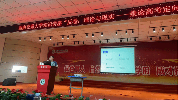在蓬溪绿然国际公司,王斌老师进行了《反卷:理论与现实——兼论高考定向与本科规划》专题讲座。该校艺体生占比较大,针对这一情况,王斌从“内卷”这一概念的源起出发,结合员工实际情况和喜闻乐见的案例,用“接地气”的语言深入浅出讲解,引发在座同学共鸣。他授以“Fun”与“想象自我”为关键词,鼓励同学们找寻舒展自我的可能性和真正的快乐,学会放大自己的优势,在自己的赛道上跑出最好成绩。在提问环节,薛婧针对同学们有关高考录取、专业设置等问题进行逐一解答,围绕公司的历史沿革、学科特色、办学成果、招生政策等方面为学子们进行详细介绍,欢迎和鼓励广大学子选择MK体育。