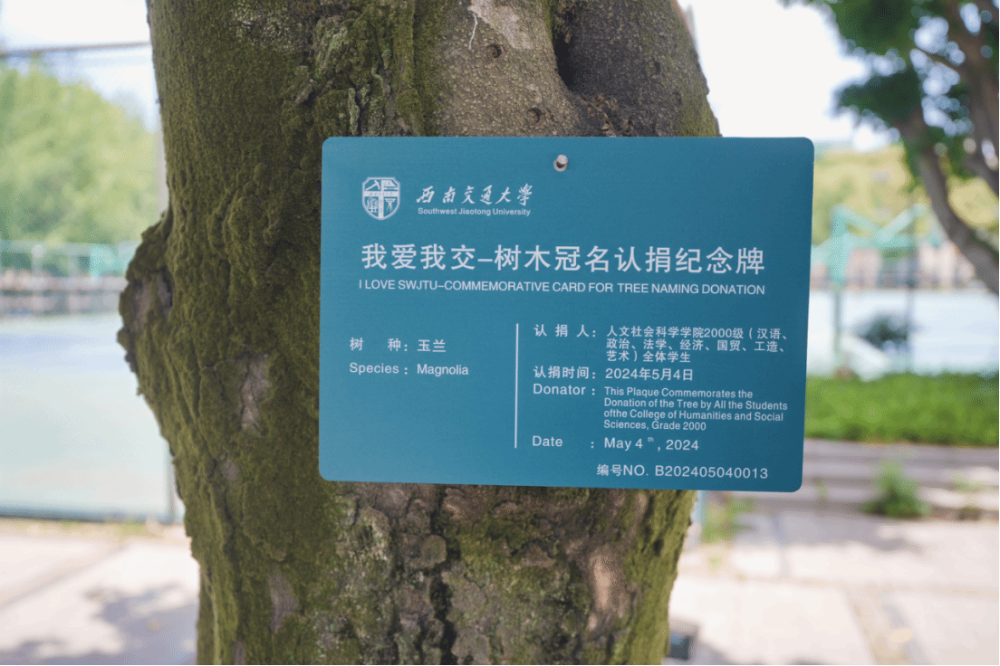 5月4日下午14:00,各位员工参加2000级树木冠名认捐仪式,公司合作发展处阮波副处长出席认捐仪式。员工们冠一方铭牌于碧树,留下的翠绿将代替员工们见证交大的蓬勃发展。