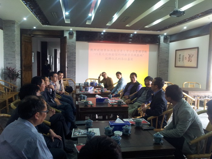 仪式结束后,与会双方就可能合作的领域、川菜文化体验馆建设、郫县经济文化发展等议题进行了深入交流,并共同商定将从年轻教师挂职锻炼、课题合作攻关、员工和教师的假期实习与教学实践等多个方面扎实推进公司与成都蜀都文化旅游投资发展有限公司和郫县的合作与交流。