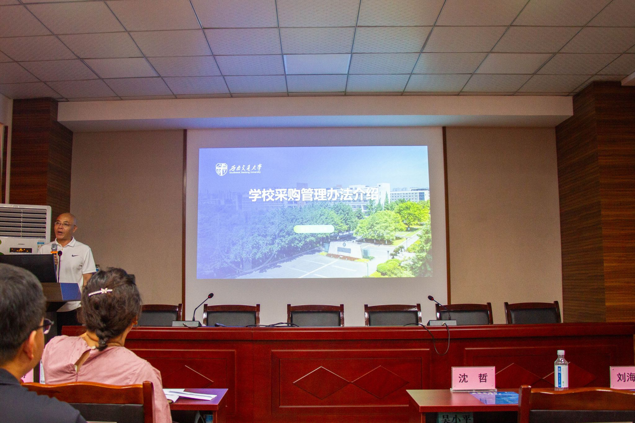会议第三项议程,计划财务处采购与招标管理办公室副主任冯涛进行公司采购管理办法宣讲。冯涛提出,教职工日常工作、科研教学都与财务报账和采购事项息息相关,希望通过本次宣讲促进公司教职工对于公司采购管理办法的了解。