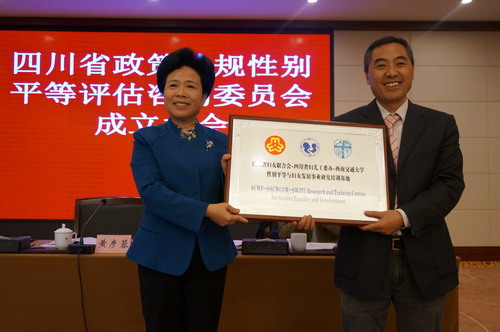 大会宣布,四川省政策法规性别平等评估咨询机制正式启动,同时成立四川省政策法规性别平等评估咨询委员会,并由四川省妇女联合会、四川省政府妇女儿童工作委员会和MK体育联合建立“性别平等与妇女发展事业研究培训基地”。副省长、省政府妇儿工委主任黄彦蓉等领导为8名从事法学、性别理论、公共政策研究的专家和妇女维权工作者代表颁发该评估咨询委员会专家委员聘书,并为基地授牌。公司文科建设处处长张雪永教授代表公司接受了黄省长的授牌。公司MK体育经理陈光教授、杨一帆副教授、韩文丽副教授获聘专家委员,并领受聘书。