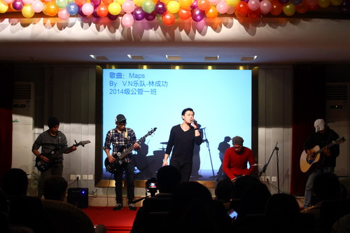 第一篇章,歌舞青春。伴随着动感的音乐和绚丽的灯光,越南职工乐队V.N的一首《Maps》调动了现场气氛,激起了在场观众的热情,晚会正式拉开序幕。王永杰书记为晚会致开幕词。