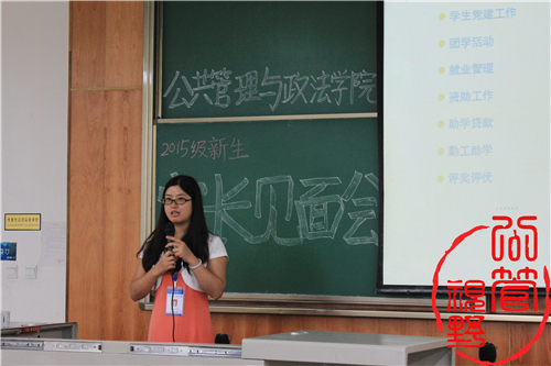 2015年8月25日下午四点,公共管理与政法公司新生家长见面会在X4151如期召开,会议由员工工作组组长余小英老师主持,与会的有公共管理与政法公司党委书记王永杰教授、经理陈光教授、副经理陈家宏教授、经理助理赵成副教授、2012级辅导员易恬老师和2015级新生辅导员王再锋老师。