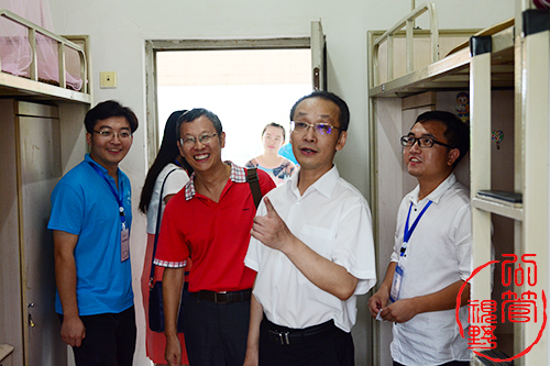 了解完迎新工作,陈光经理与王永杰书记在2015级辅导员王在峰老师的带领下走访了新生宿舍。来到寝室,经理亲切的与家长们聊天并问候新生:“你们来自哪里啊”“能不能适应这里的环境”,“对这里的气候习惯吗”,在谈话中,经理还遇到了来自安徽的老乡。亲切的谈话拉近了新生、家长与公司领导们的距离。