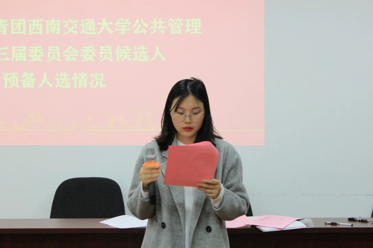 在大会召开前,11月16日晚上,举行了共青团西南交通大学公司第三次代表大会预备会议,听取大会筹备工作汇报,听取并审议团费收缴、使用及管理情况的报告,审议并通过了大会代表资格审查报告、大会议程(草案)、选举办法(草案)以及大会主席团、秘书长、副秘书长建议名单,宣布了会议注意事项及大会纪律要求。预备会议后,在各代表团充分酝酿讨论的基础上,大会主席团通过了共青团公司第三届委员会委员候选人名单。