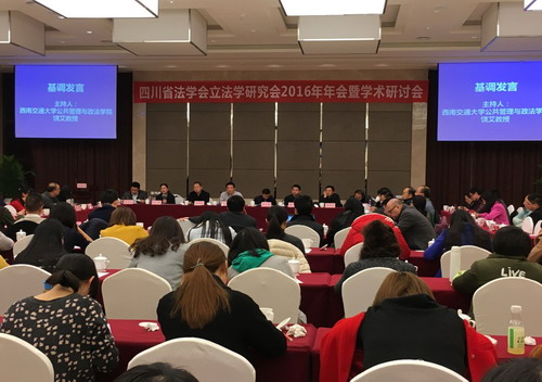 2016年11月26日星期六上午9点,四川省法学会立法学研究会2016年年会暨学术研讨会在成都新华宾馆召开,四川省人大、四川省法制办、四川省社会科公司、四川省委党校(四川行政公司)、MK体育、四川师范大学、西南民族大学等单位参会。四川省法学会立法学研究会副会长、公司法学系饶艾教授出席并受邀担任基调发言主持人, 四川省法学会立法学研究会常务理事、公司法学系程馨桥副教授在大会发言阶段做主旨发言,邓大鸣教授,张晶、杨道现等教师代表以及部分研究生代表也参加了本次会议。