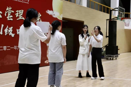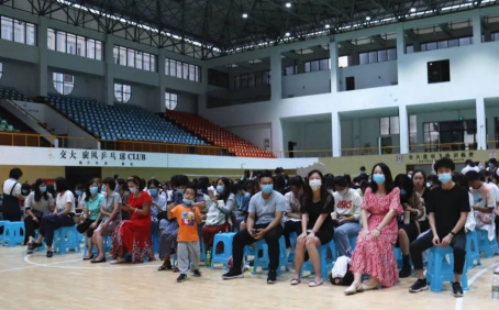 晚六点半,当落日的余晖撒在交大校园,给一草一木染上了一层金色时,同学和老师们开始陆陆续续地进入詹天佑体育馆。进馆之前,为符合防疫要求,志愿者给每个同学老师分发口罩并进行手部消毒。党委书记高凡、党委副书记余小英、团委书记薛婧、公共管理系主任刘桂花,公司教师谢宇航、林晶晶、颜学勇以及党委学工部新疆内派教师吴霞作为嘉宾来到现场。此外,研究生辅导员莫太林、2018级本科生辅导员唐明、2019级本科生辅导员石珮锦、2020级本科生辅导员许楠以及2021级本科生辅导员陈泽东也到场参与本次活动。