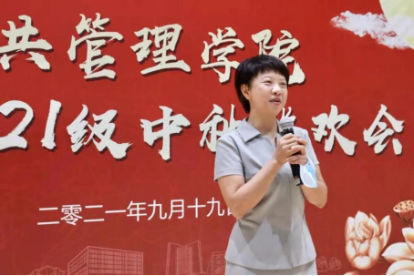 七点,随着主持人的开场,联欢晚会正式开始。首先是党委书记高凡老师给同学们带来寄语。老师谈到35年前自己走入大学过的第一个中秋节的经历,希望同学们暂时抛开思念家乡的情绪,参与到活动中来,一起过好今年的中秋节。