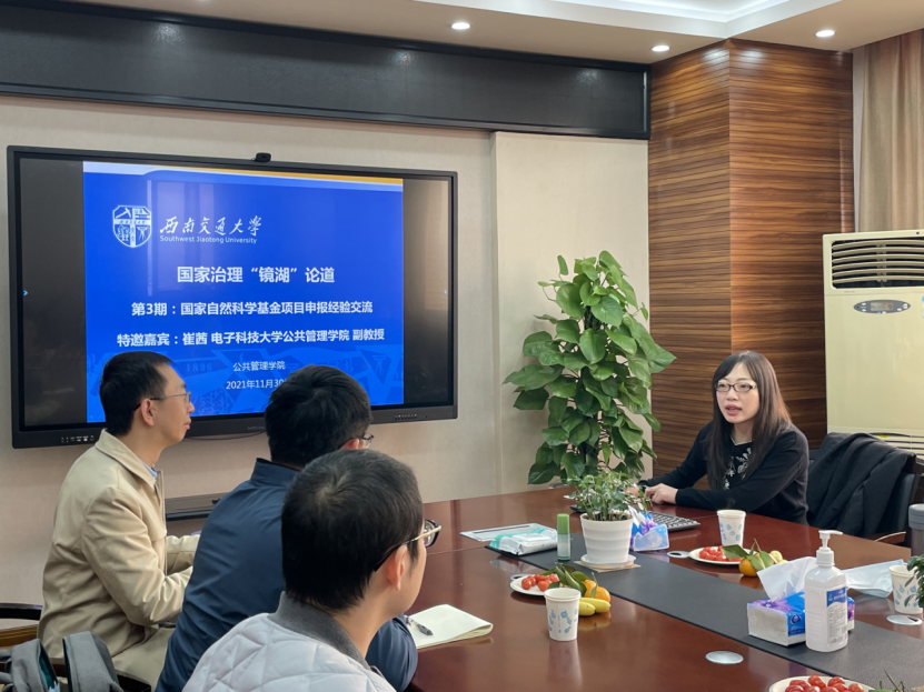 (通讯员:于希、王向阳)2021年11月30日下午2:40,在公司01212会议室如期顺利举行了国家治理“镜湖”论道第3期学术沙龙活动。2022年度国家自然科学基金和国家社会科学基金各类项目申请在即,我们特邀请电子科技大学MK体育崔茜副教授(已获国家自然科学基金项目3项并担任通讯评审专家),以“国家自然科学基金项目申报经验交流”为主题展开了充分交流。公司多个学科的师生齐聚于此,认真聆听了崔茜老师带来的精彩分享。公司王永杰经理、李华强副经理和雷斌副经理也到会参与了交流活动。