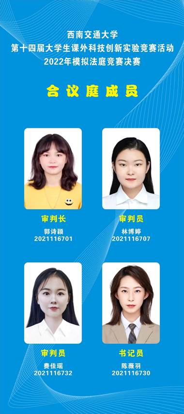 (一)模拟法庭决赛采用对抗制,由晋级决赛的两支参赛团队抽签决定担任公诉方和辩护方,合议庭成员由组委会安排其他参赛团队的队员担任,合议庭成员的表现不计入评分。