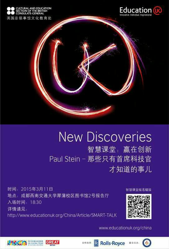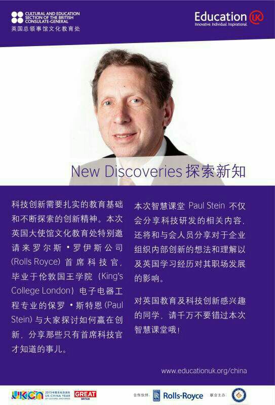 科技创新需要扎实的教育基础和不断探索的创新精神。主讲人保罗·斯特恩为罗尔斯·罗伊斯公司(Rolls Royce)首席科技官,毕业于英国伦敦国王公司(King’s College London)电子电器工程专业。本次讲座中保罗·斯特恩将与大家探讨如何赢在创新,并分享那些只有首席科技官才知道的事儿。