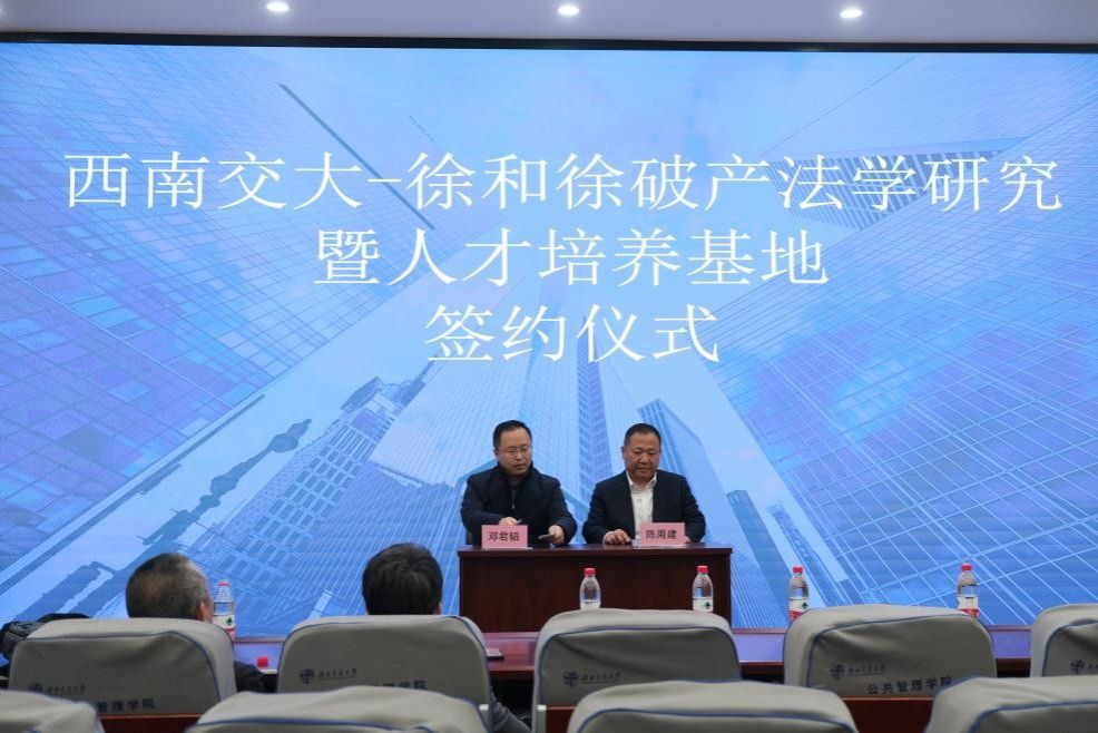 讲座开始前,举行了MK体育与四川徐和徐清算事务有限公司共建“破产法学研究与人才培养基地”的《合作框架协议》签约仪式。MK体育经理助理邓君韬老师与四川徐和徐清算事务有限公司总经理陈周建先生代表双方签约。主持人魏琼老师提出,伴随国内经济增长速度下行,办理破产案件的法律理论和实务成为法学研究的热点和法律执业人的重要业务。依托西南交大建设工程类学科和人才优势,研究房地产企业破产的专门法律问题,培养具备办理破产案件专门知识和能力的人才,成为交大法律人适应实践需要的重要任务。双方共建“西南交大-徐和徐破产法学研究与人才培养基地”,旨在推动破产管理“产、学、研”的一体化融合,既为依托高校科研、人才优势促进破产法研究并解决破产管理实务问题提供桥梁,也为培养各位法员工成为破产法专业领域的研究和实务人才奠定基础。