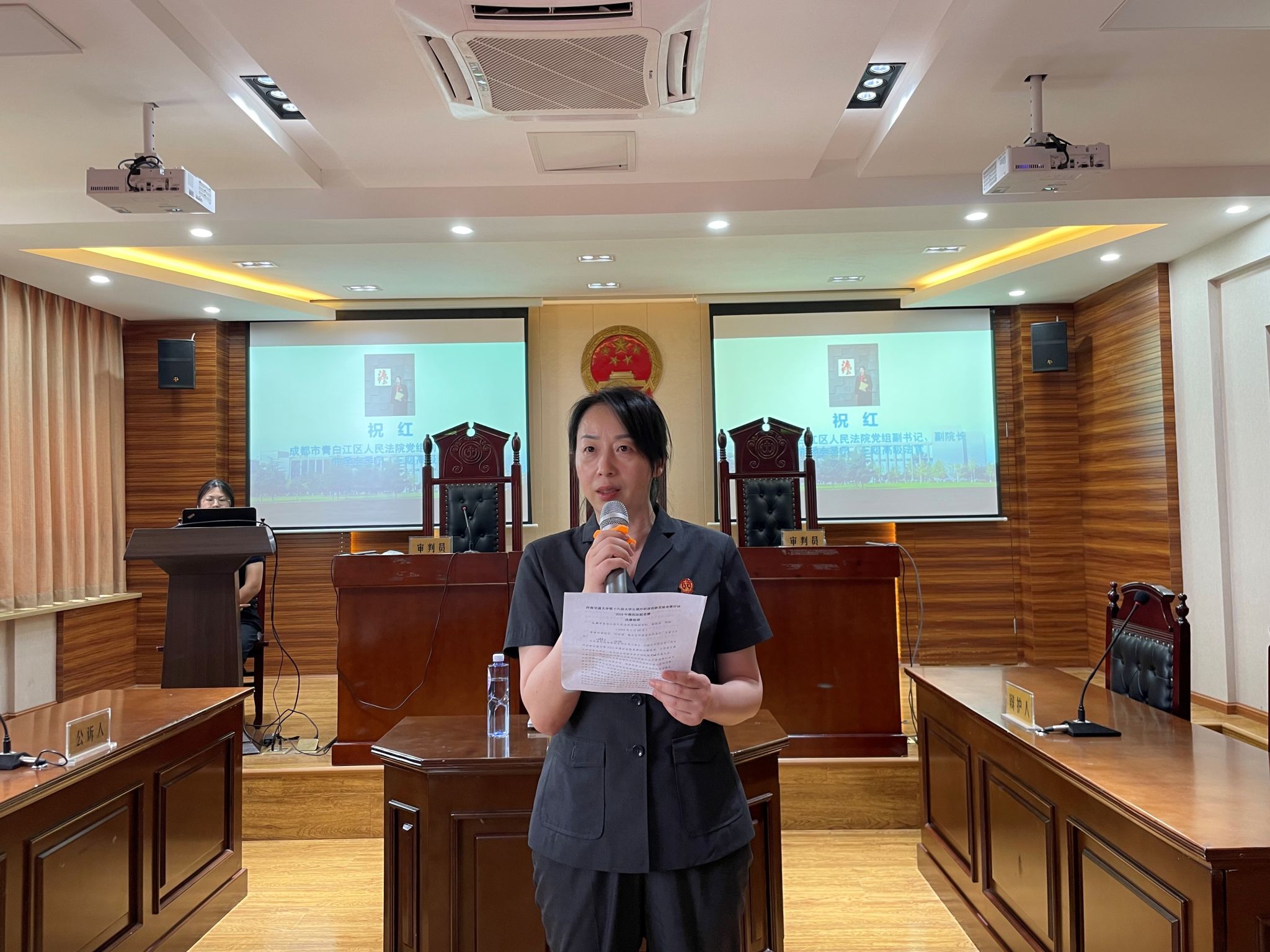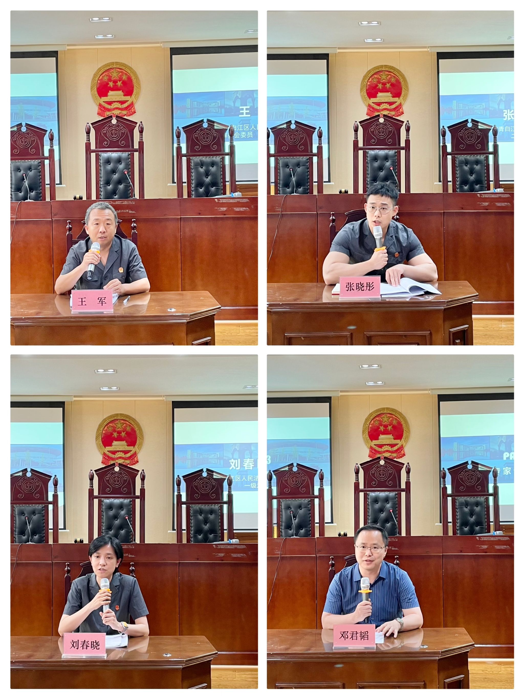 决赛开始前,祝经理为本次活动致辞,她强调了模拟法庭竞赛活动的开展对员工法学学习的重要性以及对“院校合作”培育卓越法律人才的大力支持。祝经理希望通过法院对经典案例的改编和复盘,以模拟法庭竞赛活动的形式让同学们将所学的法律知识运用于实践,提升同学们的创新实践素养和综合运用法律知识的能力,从而不断优化整合法治资源和教育资源,加快卓越法律人才培养的步伐。随后,雷斌副经理对青白江区人民法院对公司模拟法庭竞赛的大力支持表示了衷心的感谢,并为参赛选手们加油鼓劲,希望同学们在赛场上敢于表达,勤于表达,善于表达,突破自我,取得佳绩!