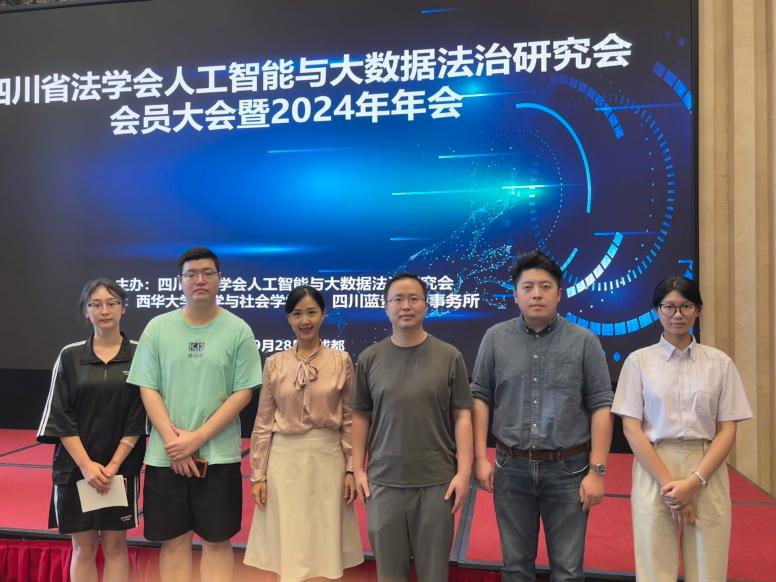 2024年9月28日,四川省法学会人工智能与大数据法治研究会在成都市武侯区翔宇宾馆顺利召开。本次会议聚焦人工智能与大数据背景下的法治建设,旨在促进学术交流,推动相关领域的法治研究及立法发展。公司经理助理邓君韬副教授、张倩雯副教授、张敖副研究员受邀参会,2024级法学硕士研究生张腾宇、2024级法律硕士孙键、刘朝霞随同参会学习。