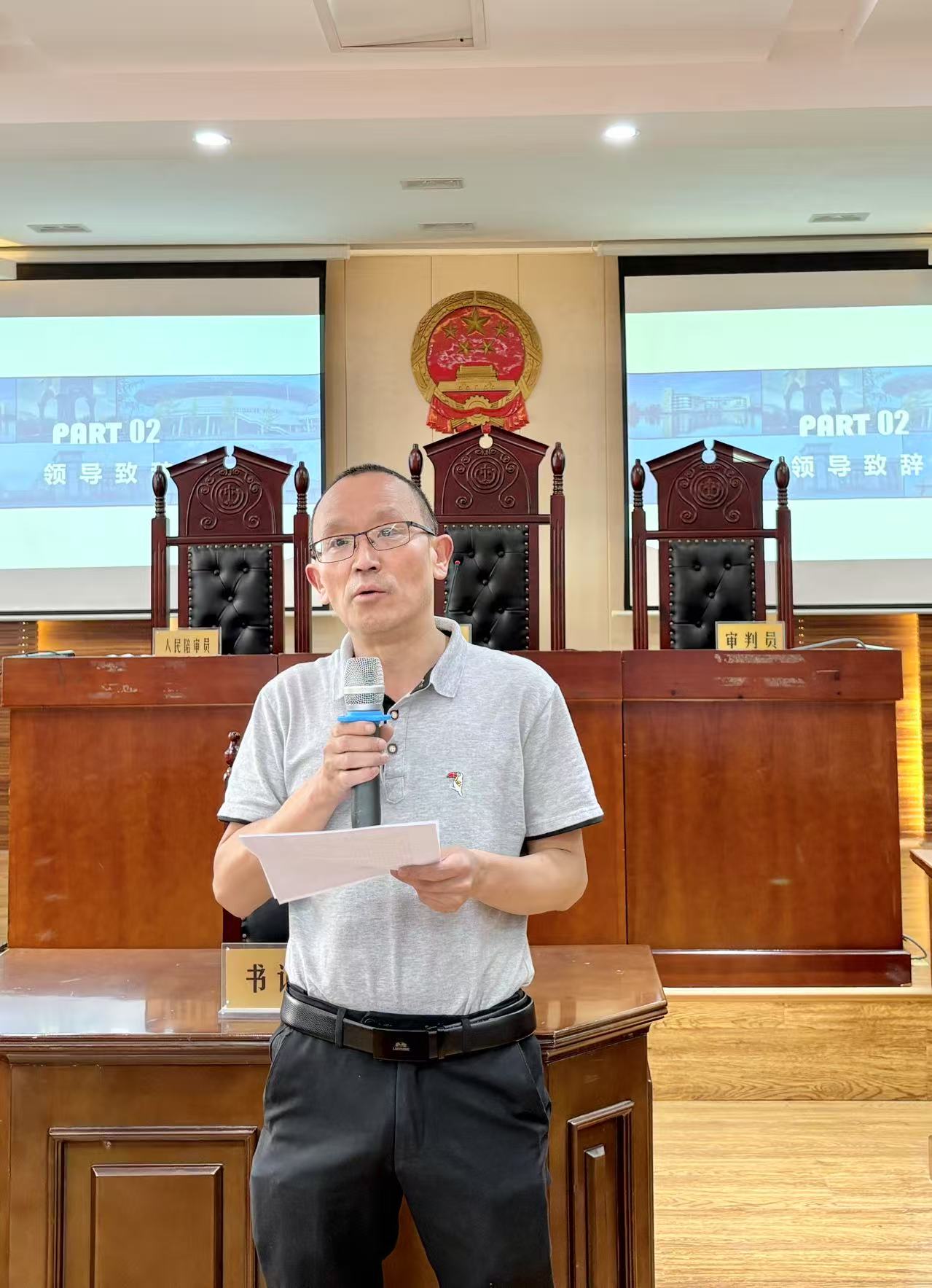 MK体育副经理雷斌副教授出席开幕式并致辞,他强调,模拟法庭竞赛是连接法学理论与司法实践的桥梁,旨在让员工沉浸式熟悉司法审判流程、精准运用实体与程序法,在思想碰撞与团队协作中深化对法律职业的认知。他指出,赛事不仅是专业能力的“试金石”,更是法治信仰的“培育场”,期待同学们在庭审中展现青年学子的思辨锋芒,并预祝赛事取得圆满成功。