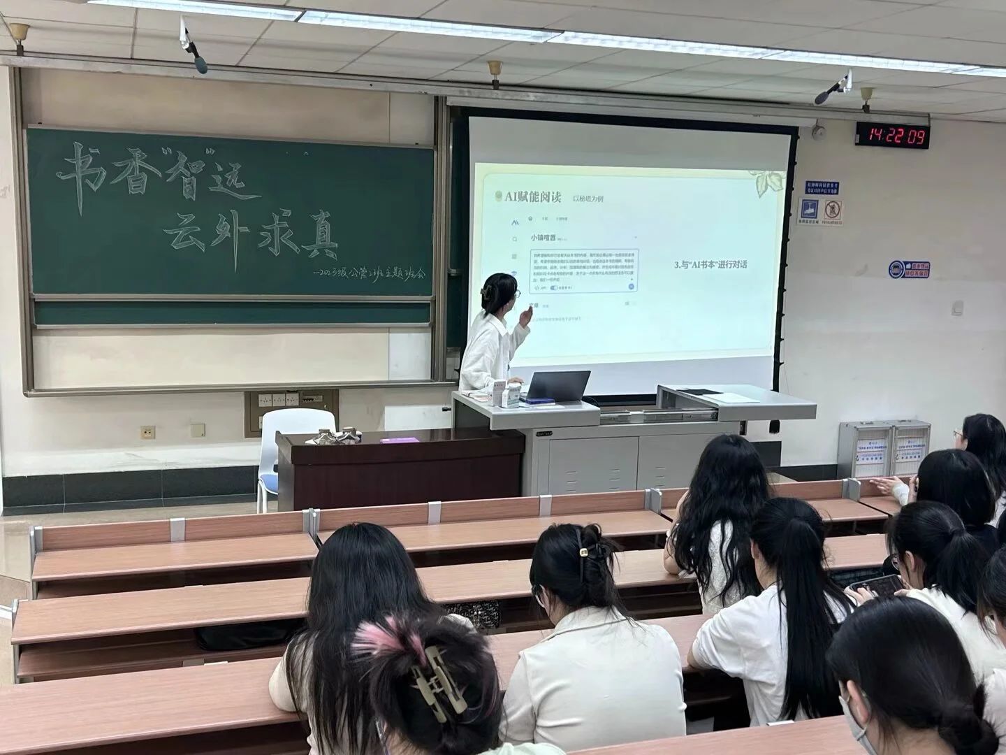 4月23日,公共2023-01班以“阅读:通往未来的桥梁”为主题开展了班会活动。首先,主持人通过一组触目惊心的数据直揭当下的阅读现状,警示大家要让AI成为深度阅读的“加速器”而非“替代品”。在分享环节,同学们对《小王子》《生死疲劳》《你的夏天还好吗》的心得分享让大家深刻认识到:技术能解构文本,但心灵的共鸣永远需要真实的生命体验。随后在班级共读环节10个小组以多元形式展现了阅读的丰盈与充实,大家就小组阅读内容进行了分享。在观看了《AI时代下如何阅读》视频后,两位同学就自己对于阅读时AI工具的使用与影响进行了分享。在班会的最后,徐梦莹老师进行了点评与分享,她以《我的阿勒泰》这本书切入,认为在AI时代下文字教会我们在哪里安放灵魂。