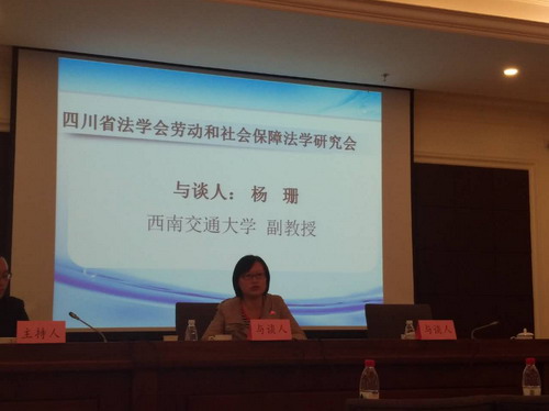 本次年会主题为“新业态下的劳动关系调整”,下设“‘互联网+’背景下劳动、用工形式与劳动关系”“供给侧结构性改革与社会保障”“自由贸易、劳工标准与劳动法”三个分议题。公司2016级硕士研究生陈玉昕、杨芸合作的《“一带一路”倡议下海外劳工权益保护法律问题研究》应邀在下午的第一研讨单元做主题发言;公司杨珊副教授应邀在第三研讨单元作为与谈人分别对《隔代照料会影响中国中老年人的健康吗?》《总经理的劳动法角色定位》《航空安全员休息期问题刍议》三篇论文予以了点评。