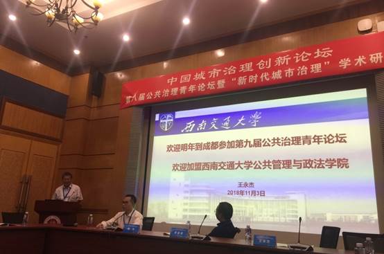 最后,在会议闭幕式上,罗梁波主编和陈文教授分别作了此次会议的发言和总结,对各位与会嘉宾和发言的学者予以了真挚的感谢。在随后的论坛交接仪式上,公司经理王永杰教授接过交接棒,同时作为第九届公共治理青年论坛主办方代表进行了现场宣传与发言,王永杰经理向大家介绍了公司和公司的基本情况,向各位专家学者和老师同学发出了邀请,热烈欢迎大家明年到位于天府之国成都的MK体育参与第九届公共治理青年论坛,同时诚挚邀请大家加盟公司,共同为促进公共管理学科的发展汇聚力量。至此,本次参会交流圆满结束!