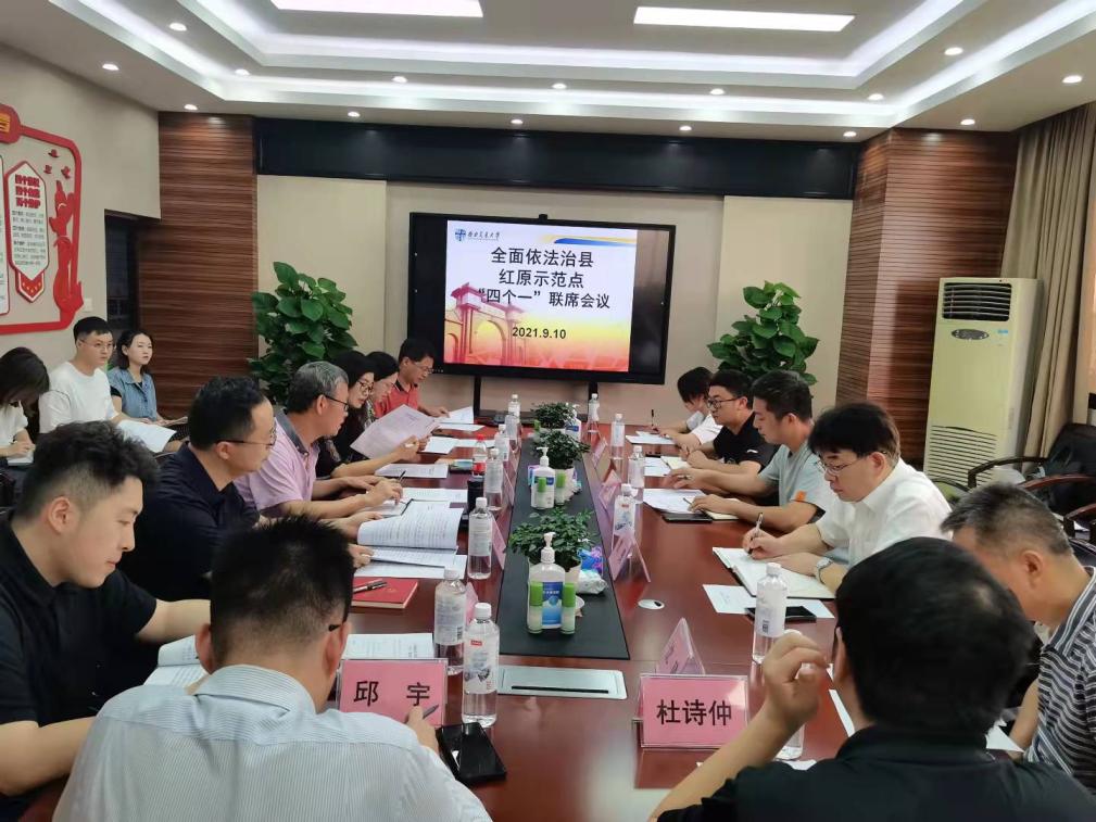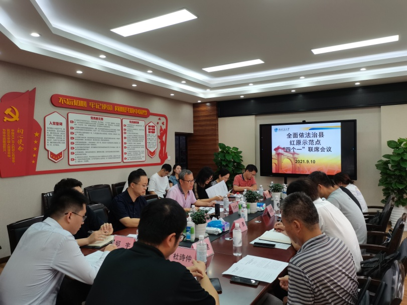2021年9月10日上午,红原示范点“四个一”联席会议在公司召开。阿坝州红原县委依法治县办李翰林一行,四川省公安厅法制总队行政审批支队支队长张洪亮,北京德恒(成都)律师事务所副主任黄勇一行,以及公司党政办副主任蒋罗林、公司经理王永杰、经理助理邓君韬、法学系陈迎新、杨道现、张敖出席会议,法律硕士研究生金获、蔡馨雨、邓悟、刘茜、丁富杰作为“红原账图小组”成员参加会议。