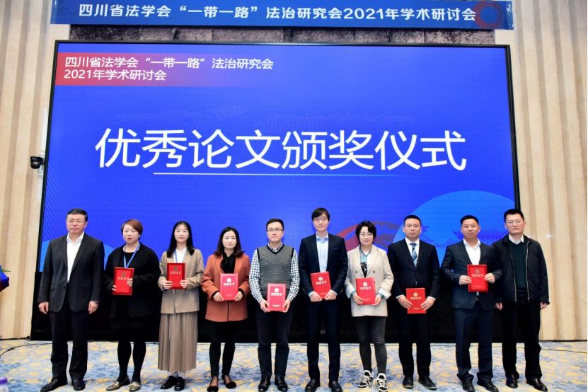 张倩雯博士与张文艺同学的合作论文《欧盟与美国跨境数据流动的分歧与合作——从安全港原则与隐私盾协议失效案展开》获得本次研讨会特等奖,邓君韬副教授和金获同学的合作论文《‘一带一路’国际货运联运铁路运单法律问题研究——以成都铁路局‘一单制’试点为例》荣获一等奖,吴昱副教授《‘一带一路’倡议下中国自贸区战略的环境政策选择》一文荣获二等奖。