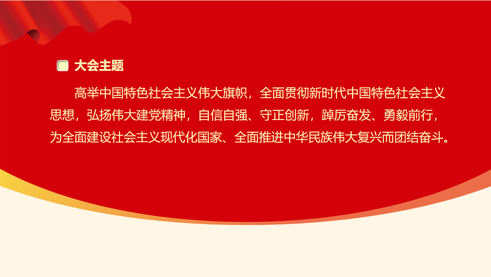 党的二十大大会主题高举中国特色社会主义伟大旗帜,全面贯彻新时代中国特色社会主义思想,弘扬伟大建党精神,自信自强、守正创新,踔厉奋发、勇毅前行,为全面建设社会主义现代化国家、全面推进中华民族伟大复兴而团结奋斗。彭川宇同志带领会党员同志们全面领会党的二十大报告主要内容及主要成果。