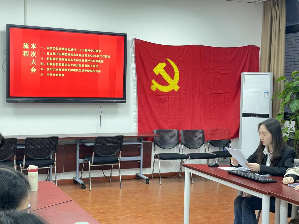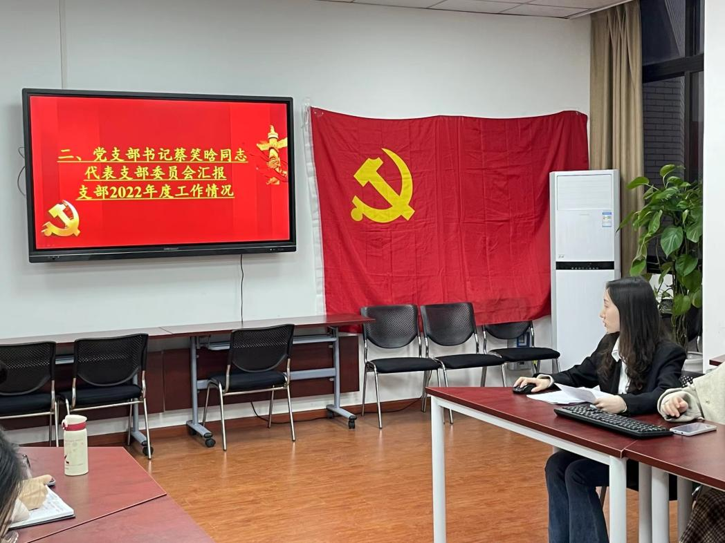 随后,进入了组织生活会的第二项议程:由蔡笑晗同志代表支委会向党员大会汇报2022年度工作情况。她由表及里地对过去一整年的工作情况及存在的问题展开剖析,她指出支部还存在理论学习效果不佳、活动开展积极性不高、督促检查复盘不到位等问题,针对这些问题,她谈到下一步工作应该加大思想建设工作力度,创新理论学习形式载体;抓主要矛盾,解决重点难点;复盘总结启新思,踔厉奋发向未来。