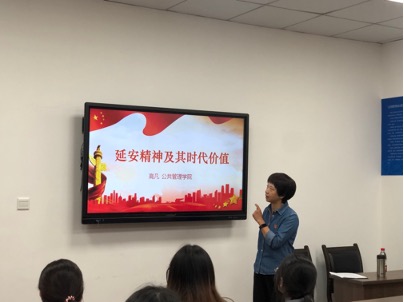 高书记围绕延安精神的主要内容、延安精神的形成、谱写新时代弘扬延安精神等方面进行了深入浅出地讲解,讲述了党中央在延安十三年艰苦奋斗的光辉历程和辉煌成就,深刻诠释了延安精神的时代价值,为与会党员上了一堂精彩生动的党课。延安精神是党的传家宝,是中华民族宝贵的精神财富,其内涵是坚定正确的政治方向;解放思想、实事求是的思想路线;全心全意为人民服务的宗旨;自力更生、开拓创新的进取精神。高书记表示,全体党员要从其丰富内涵中找到根脉、传承基因、汲取力量。坚定历史自信,增强历史主动,用延安精神滋养初心、淬炼灵魂,从中汲取信仰的力量,肩负起时代的重任。