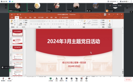 3月8日,硕士2022级公管第一党支部通过腾讯会议的形式开展了主题为“厚植爱国情怀,弘扬雷锋精神”的主题党日活动,号召全体党员同志广泛开展学习雷锋志愿服务活动,增强党员党性修养。3月11日,硕士2021级公共管理第二党支部在线上开展党日学习活动,学习活动的主题是“习近平在中共中央政治局第十一次集体学习时强调加快发展新质生产力 扎实推进高质量发展”,旨在深入领会习近平总书记关于新发展理念的重要思想,并进一步推动班级工作开展。3月21日,硕士2022级法学第一党支部在腾讯会议展开“加强思想引领,强化理论学习”主题党日活动,深入学习贯彻习近平总书记在中共中央政治局第十一次集体学习时的重要讲话精神,进一步拓宽同志们的理论学习知识 ,加深对爱国教育情怀的根植。