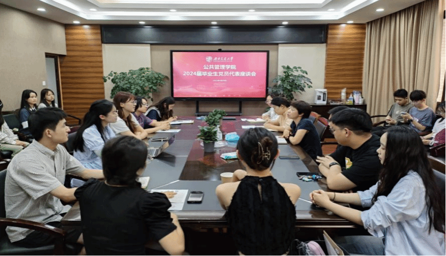 高书记在总结讲话中,向即将启程出发的全体毕业生送上祝福,对同学们的真挚发言表达感谢,并表示今天座谈会上的意见和建议,公司会认真总结,尽快研究解决方案,更好地为公管学子营造更加安全、舒适、便捷的学习成长环境。关于党员代表们提到的档案材料等问题,公司会进一步梳理完善相关制度,在未来加强对党员的教育培训。