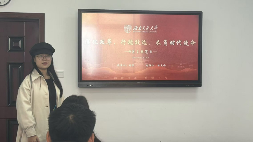 硕士公管安工第一党支部的刘佳同志在进行集中学习时引述习近平总书记重要讲话强调,广泛凝聚共识、充分调动一切积极因素,对顺利推进改革十分重要。要切实做好改革舆论引导工作,加强正面宣传,唱响主旋律,传递正能量。她号召大家身为青年党员更要增强政治责任感和历史使命感,以攻坚克难和迎难而上的政治勇气,直面矛盾问题不回避,铲除顽瘴痼疾不含糊,应对风险挑战不退缩,为新时代中国特色社会主义事业贡献自己的一份力量。