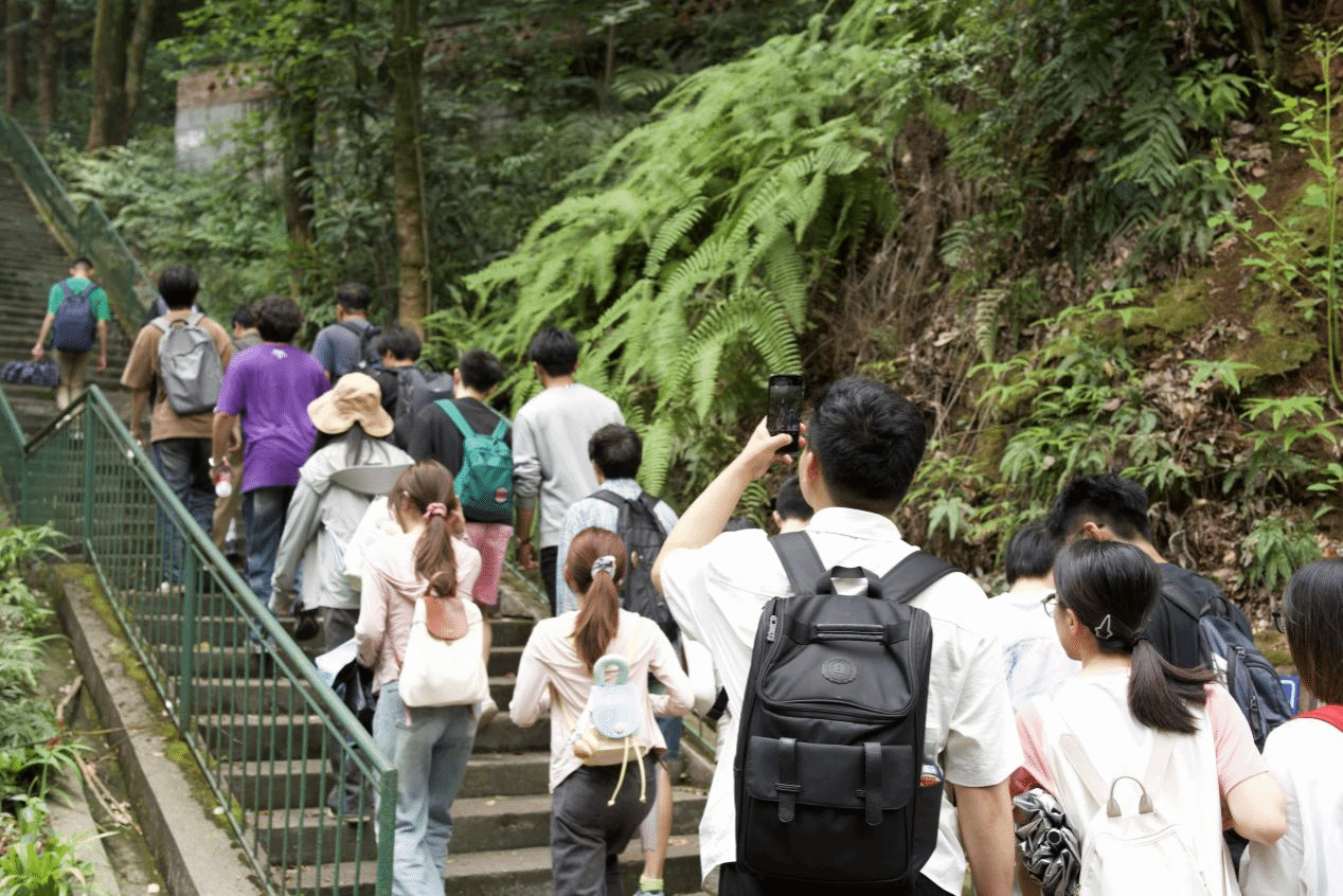 峨眉校区作为公司“一校两地四校区”办学格局的关键部分,承载着交大百折不挠的奋斗精神与源远流长的文化底蕴。活动伊始,师生们走进名山电影场、登上“157 阶”、瞻仰校训牌坊。在实地参观与沉浸体验中,同学们不仅领略到峨眉校区的旖旎自然风光与优良环境设施,更仿若穿越时空,亲身感受到公司创业初期的艰辛与不易,深刻领悟了公司“双严”传统的内涵,进一步坚定了爱校荣校的决心,为涵养优良校风学风注入了强大动力。在参观食堂、图书馆、员工公寓和智慧教室等场所时,大家全方位了解了校区的基础设施条件,也对在此学习生活的同学们的状态有了更直观的认识。