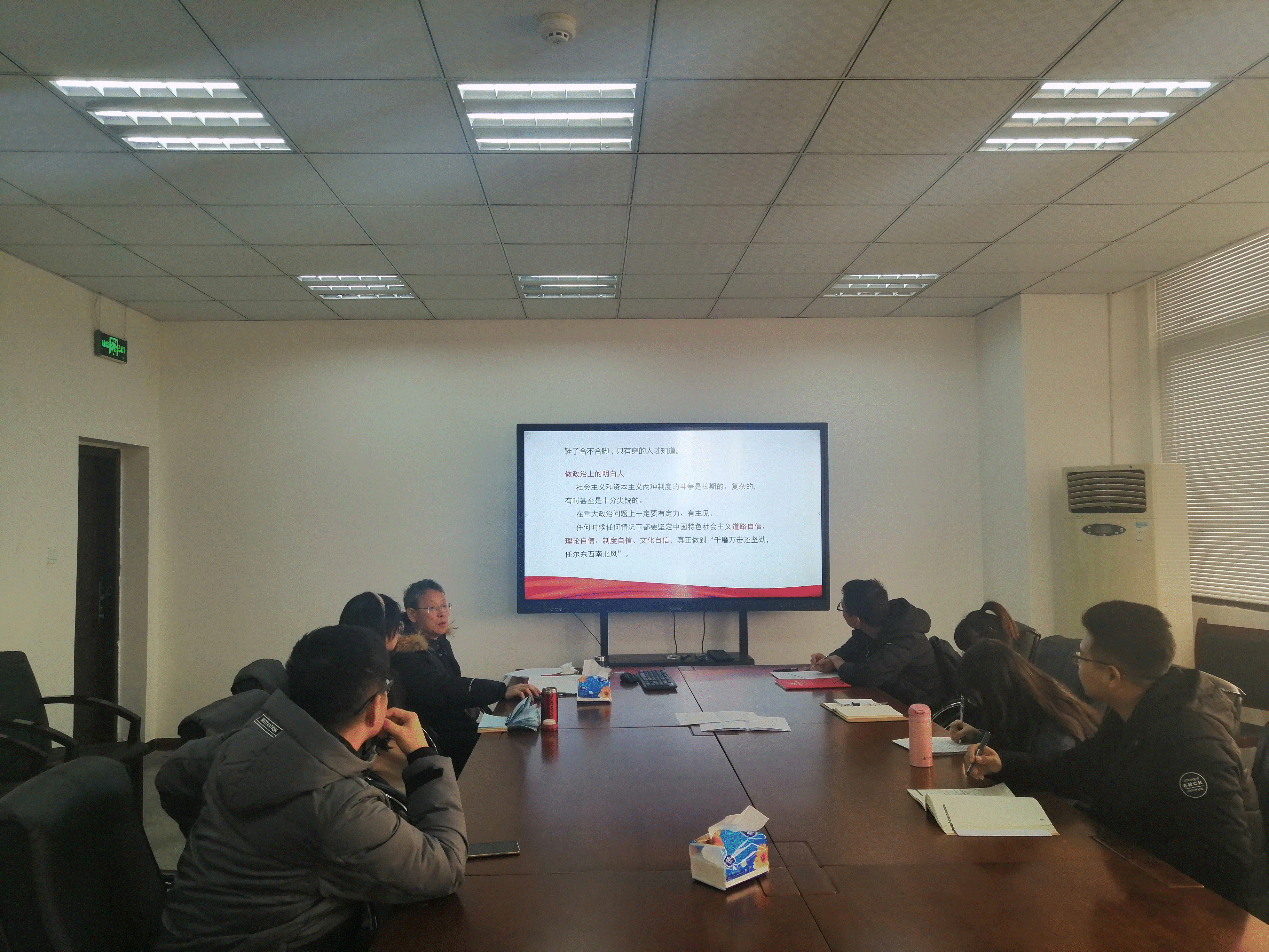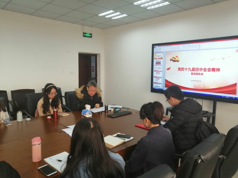 为深入学习贯彻党的十九届四中全会精神,提升党员思想修养。2019年12月4日下午,公共管理与政法公司硕士2019级公管第一党支部开展“学习十九届四中全会精神”主题党日活动,邀请到公共管理与政法公司经理王永杰讲述专题党课,就学习贯彻十九届四中全会精神与员工党员分享感想。硕士2019级公管第一党支部13名党员参加。会议由党支部书记梁欢主持。