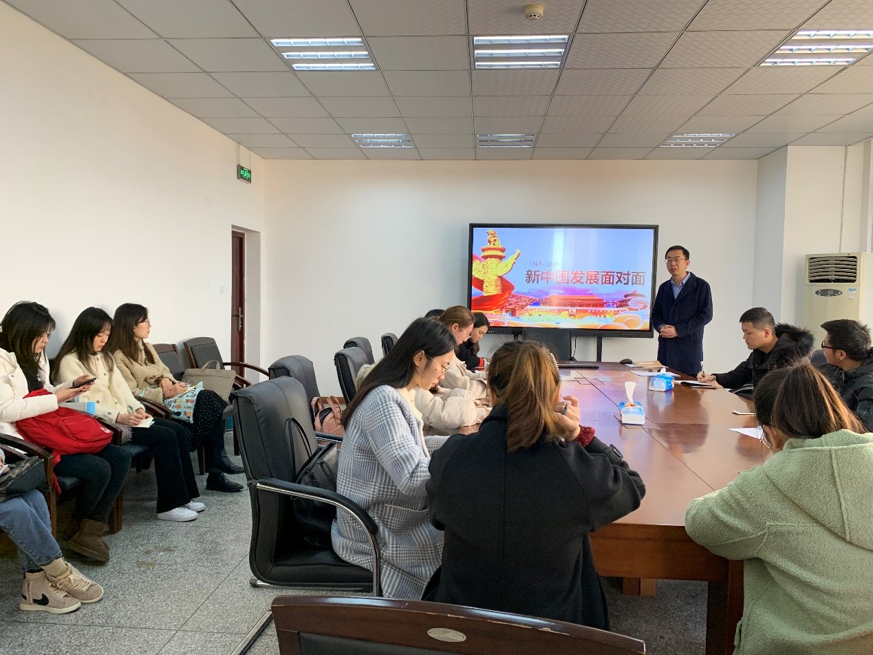 在组织生活会正式开始前,副经理李华强同志给支部全体党员讲了一堂题为“新中国发展面对面”的党课。他主要从以下三个方面对党课进行展开。首先回顾了我国七十年的沧桑巨变,1949年新中国成立,从当时的一穷二白到现在的全球第二大经济体,经济的快速发展,民生的逐步完善,科技的不断进步,制度的持续创新,新中国经历了巨大的变化,中国人民和中华民族凭借自身的勤劳勇敢,在实现中华民族伟大复兴的征程上不断取得突破。其次他讲述了我国七十年的光辉历程,从实现民族独立,人民解放到改革开放后我国的快速发展,到现在步入新时代,这七十年间我国取得了许多巨大的成就,这七十年更是中国共产党人带领全国各族人民铸就我国光辉历史的七十年。最后他总结道,当前中华民族所取得的成就归根结底在于坚持了中国共产党的领导,坚持了将马克思主义普遍真理同中国实际国情的相结合,这是全党全国各族人民共同努力奋斗的结果。通过李华强副经理所讲的党课,进一步增强了支部全体党员同志对祖国的自豪感以及自身的使命感和责任感,也让我们更加坚信只有在中国共产党的领导下,中华民族的伟大复兴才会实现。