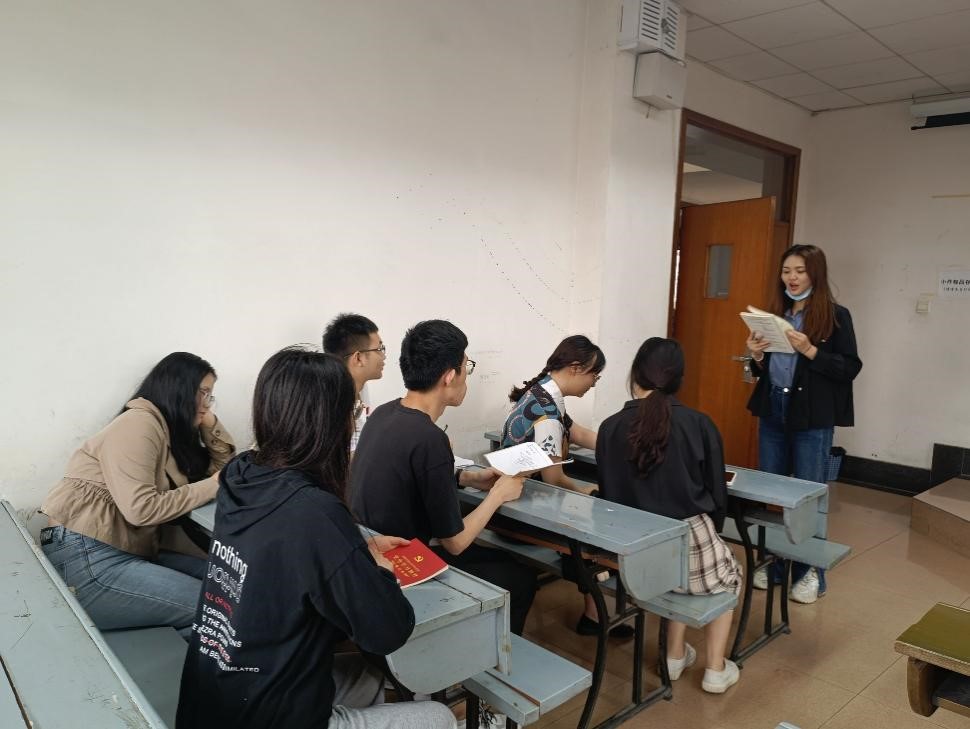 最后是小组理论学习和读书感悟集体分享阶段。支部委员会牵头,各小组开展召开理论学习和读书感悟汇报分享会,每位同学就自己所学理论书籍中印象最深刻的部分进行分享,并在小组内交流和讨论,最后评选一二三等奖若干名,为同学们发放相关纪念品。