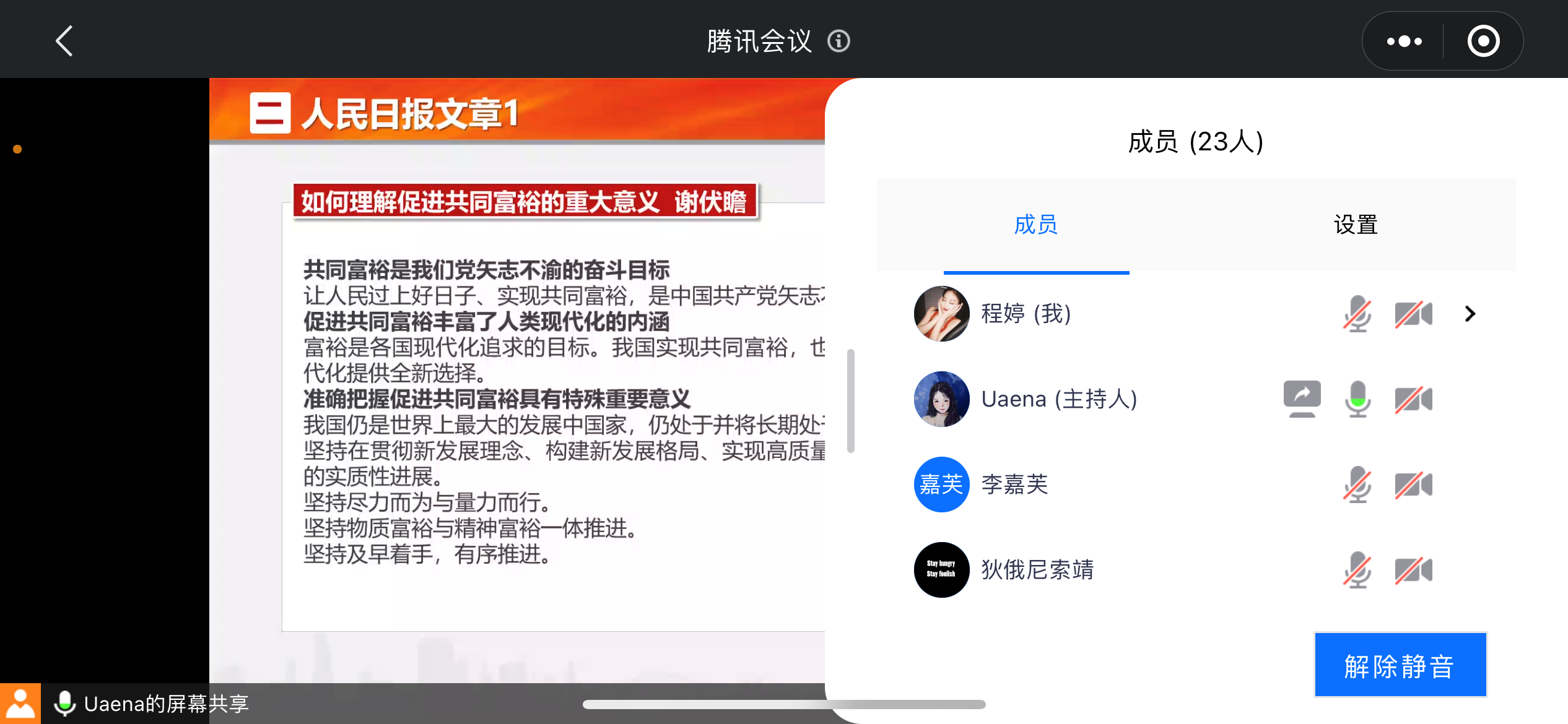 讲话全文朗读完毕后,蔡笑晗书记又基于人民日报中三篇共同富裕的文章带着支部成员进行深入理解,三篇文章分别是关于如何理解促进共同富裕的重大意义、理解共同富裕是社会主义的本质要求以及理解共同富裕是中国式现代化的重要特征。