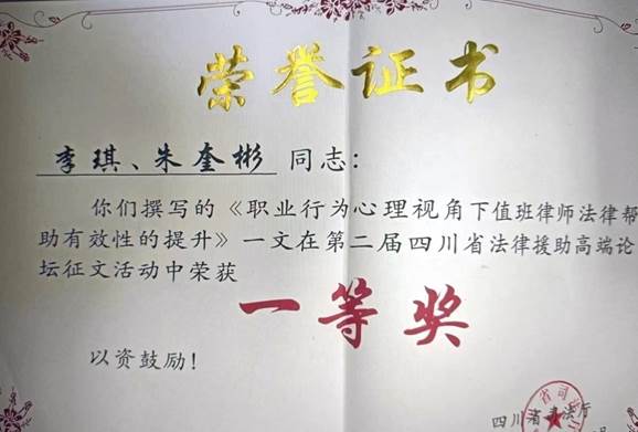 公司法律硕士研究生李琪同学在其毕业论文写作基础上撰写的《职业行为心理视角下值班律师法律帮助有效性的提升》一文荣获一等奖,也是本届论坛唯一在读研究生获此殊荣。李琪同学作为优秀论坛获奖代表,在分论坛环节进行论文主旨发言交流。