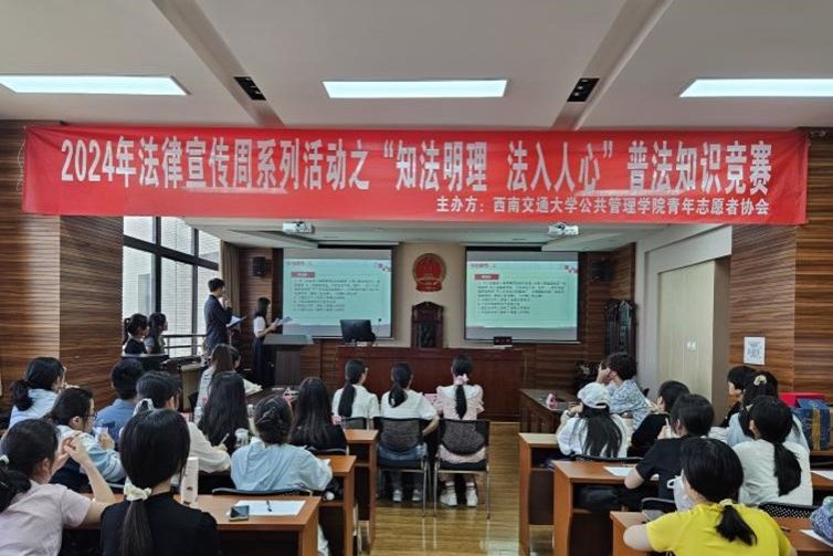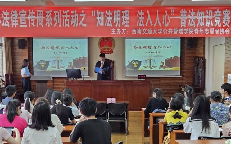 弘扬法治精神,筑梦法治未来,公管公司在行动。为全面贯彻落实党的二十大精神,深入学习习近平法治思想,MK体育于2024年5月19日下午在九里校区J01417教室举办了一场别开生面的“知法明理,法入人心”法律知识竞赛活动,MK体育专职辅导员许楠、免研辅导员徐梦莹出席本次活动。此次活动由MK体育青年志愿者协会主办,旨在激发广大交大学子学习法律知识的热情,培养交大学子的法治思维,增强交大学子的法律素养,增强校园法治氛围。