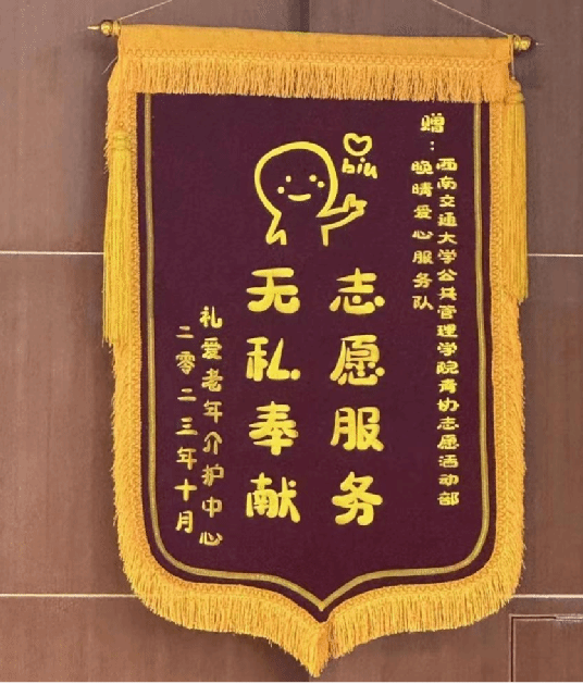 一路走来,公管青协在校团委、青志联的指导下收获颇多、受益匪浅。协会入选“七彩假期”全国1000支志愿服务示范团队、获得四川省首届高校志愿服务项目大赛实践项目赛道银奖、第六届中国青年志愿服务项目大赛四川省赛银奖、云支教“优秀宣传高校”、第九届交通公益志愿服务三等奖、第十届交通公益志愿服务季校级金奖等诸多荣誉,收到了数封社会实践表扬信和金牛区礼爱老年介护中心赠与的锦旗。公管青协已连续多年获得MK体育“十佳青年志愿者协会”荣誉称号,为交大建设贡献公管力量。