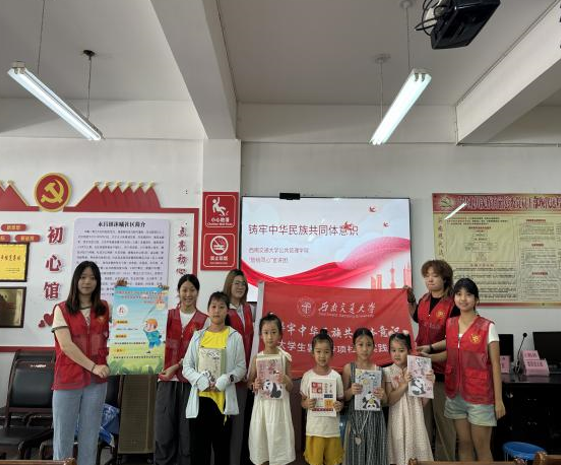 2024年8月13日,“管绘同心”宣讲团通过开展“一起拼中国地图”、讲解中华民族共同体意识等互动活动,向沐曦社区的羌族和汉族小朋友们宣讲铸牢中华民族共同体意识,增强他们的团结意识。最后,志愿者们还赠送给社区书记《铸牢中华民族共同体意识——全国民族团结进步表彰大会精神读本》一书,希望能够为沐曦社区中华民族共同体意识的树立作出一份小小的贡献。