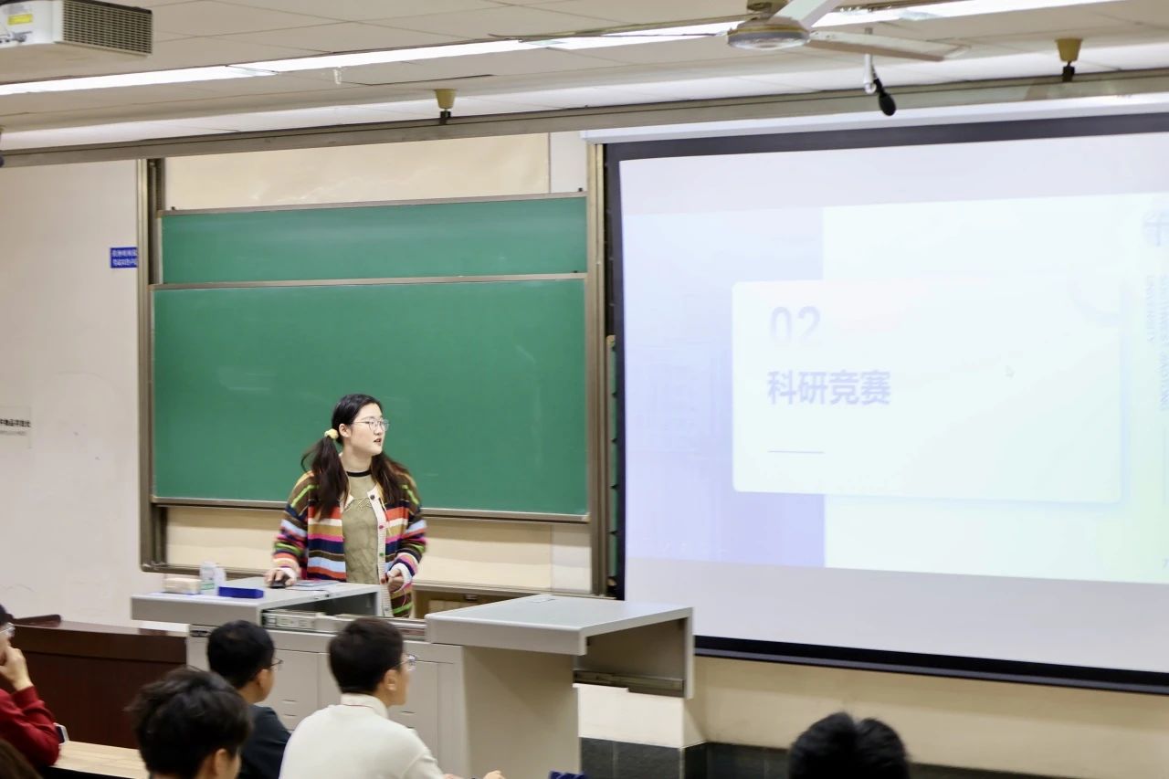 接下来胡宇菲同学分别从课程学习、科研竞赛、综测和三个方面进行了分享。在大家特别关注和关心的综测问题,胡宇菲同学向同学们介绍了综测成绩的构成和每个板块的提分方法,使同学们恍然大悟、受益匪浅。