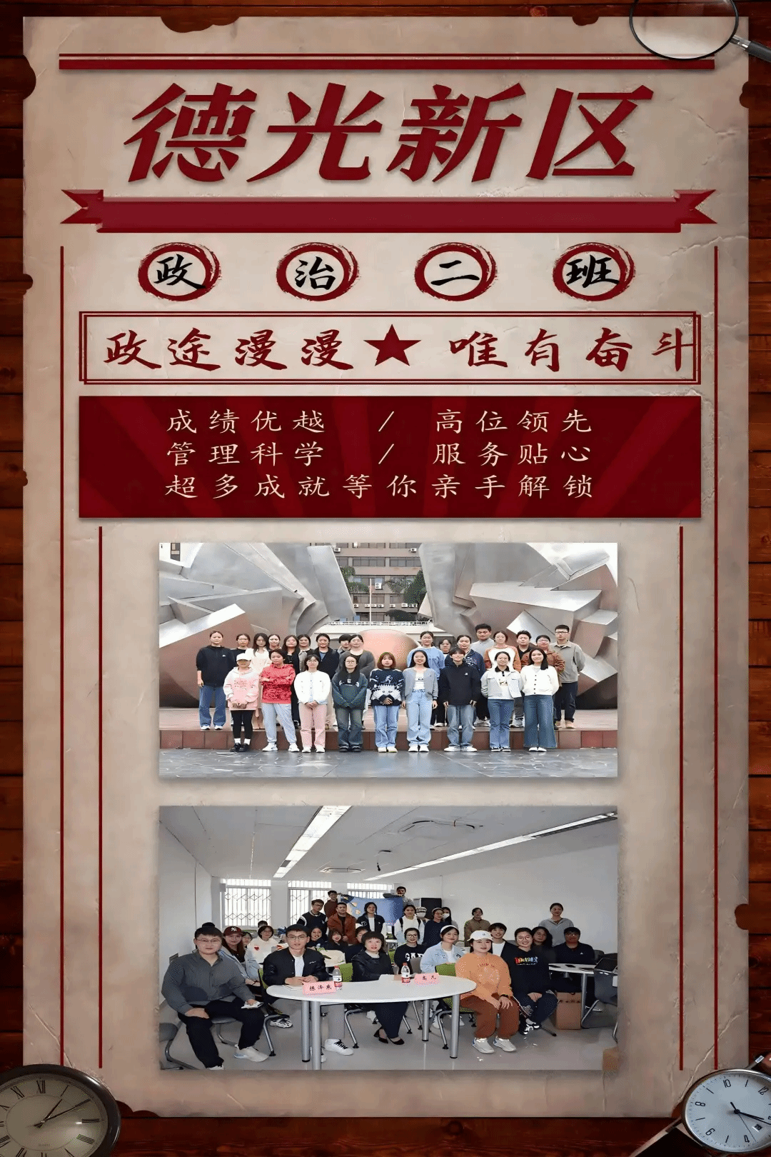 班级介绍:政治2022-02班的同学们,恪守着“勤学铸才,治学为公,政以修身,学以明志”的班级班训,以团结向上的姿态,彰显了班级昂扬的精神风貌和强大的凝聚力。我们是在主题班会上与老师积极互动,不断自我提升的忠政学子;是在跳绳比赛中尽情挥洒汗水,勇夺佳绩的忠政团队;也是在主题团日活动中与兄弟公司、不同专业的同学们携手合作,相互学习的忠政集体;更是在古诗词比赛的朗诵环节中,共同探索中华传统文化之美的忠政伙伴。这便是我们“忠于心,政当行”的忠政精神,这便是“忠政不贰”这个团结的集体。