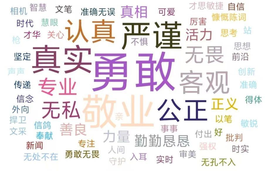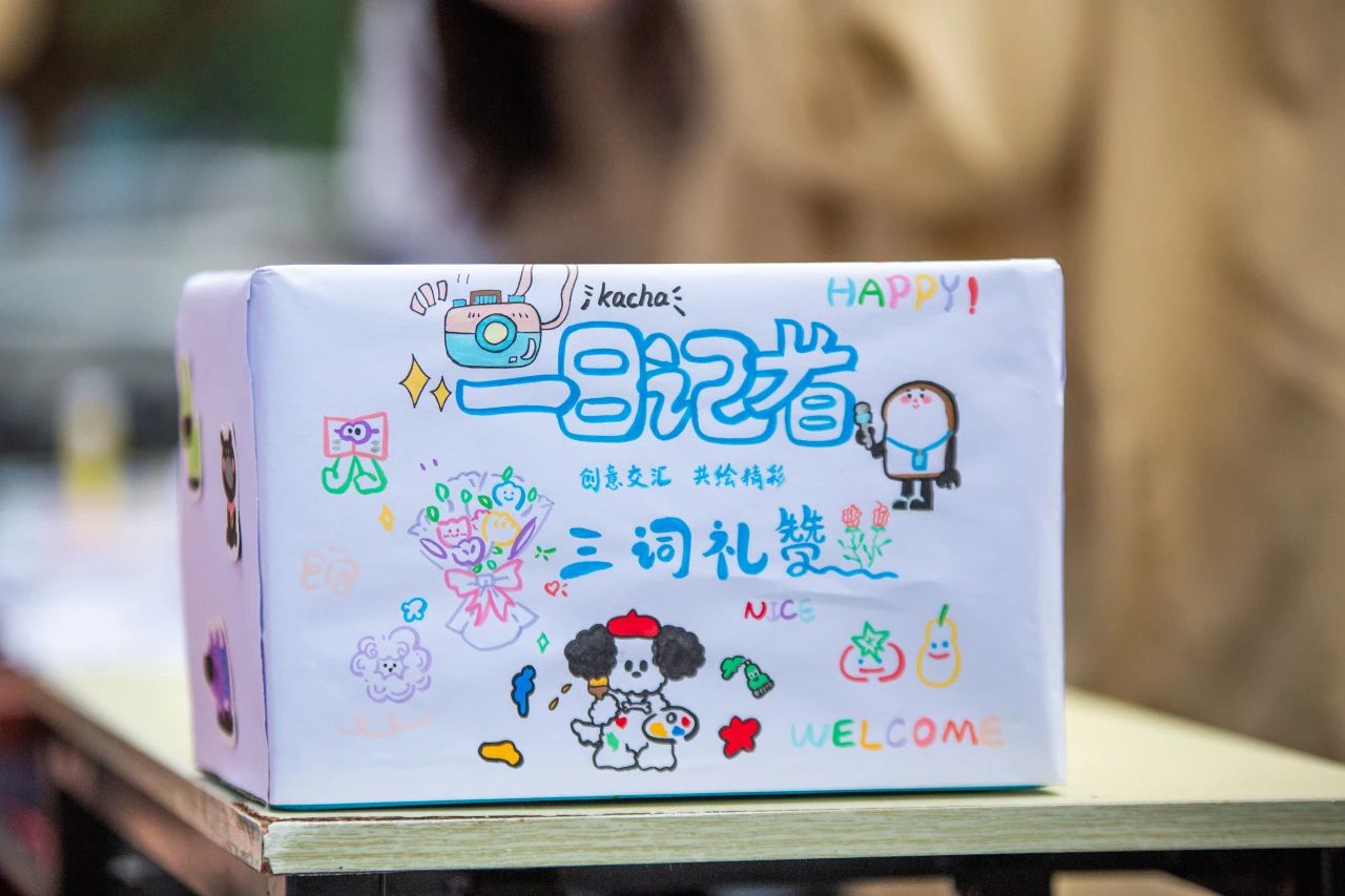 在该活动中,同学们用三个词语描绘了印象中的记者。妙笔生花,一张张书签上留下了对记者们诚挚的赞歌。“严谨”、“敬业”、“勇敢”等词语,不仅描绘了同学们心中的记者形象,也彰显了记者的内核,更是同学们在这个特别的节日送给记者们的礼物。