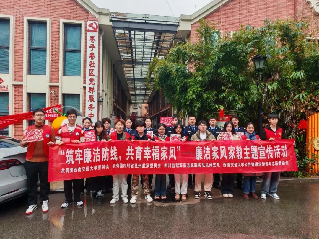 为深入学习贯彻党的二十大精神,全面落实习近平总书记关于青年工作的重要思想和关于志愿服务的重要指示精神,进一步弘扬雷锋精神及“奉献、友爱、互助、进步”的志愿精神,积极引导公管学子在社会实践与志愿服务的大课堂中受教育、长才干、作贡献,正值2025年3月5日“学雷锋”日,MK体育青年志愿者协会联合四川监狱深蓝志愿服务队邑州支队在成都市金牛区枣子巷社区内举办“筑牢廉洁防线,共育幸福家风”主题宣传活动,以实际行动弘扬廉洁文化、普及法律知识。