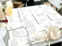 在“文摘换花”环节,同学们在明信片上创作与春天、红色文化或经典书籍相关的短诗,或是摘抄书中经典内容,用饱含心意的作品换取玫瑰花。这一活动将阅读与艺术创作相结合,在书写的过程中深入品味经典的韵味,展现自身的文学底蕴。每一张明信片都成为了知识与情感的载体,为班级留下了珍贵的手账记忆。