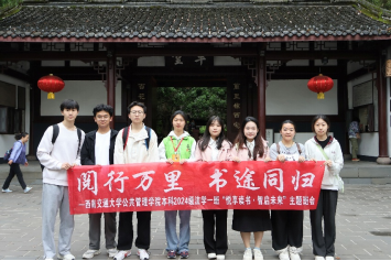 在老师们和同学们的精彩分享后,法学2024-01班员工代表组织前往杜甫草堂开展研学活动。刘玉烨担任此次实践研学的讲解员,带领同学们在历史遗迹与相关故事当中,“阅”览千年诗脉,感悟历史风华。