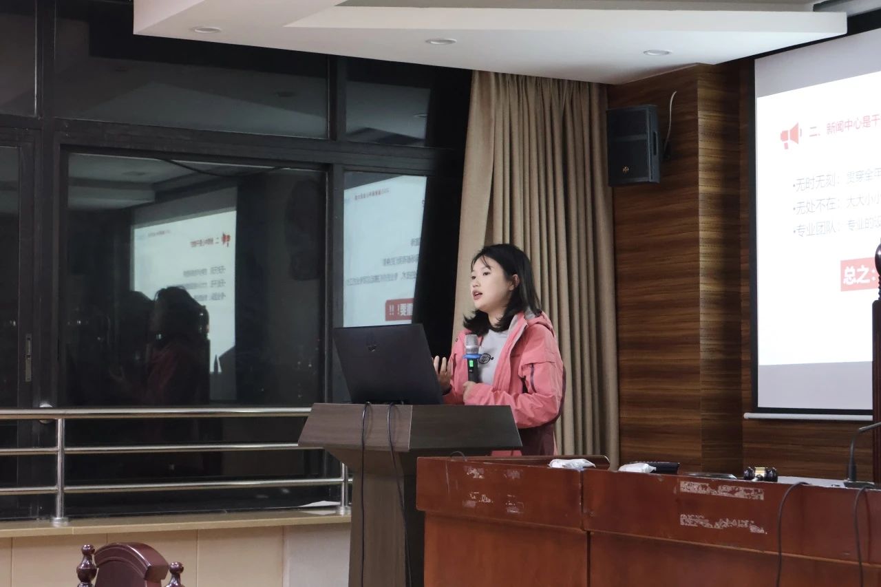 活动开始,徐梦莹老师率先登台,向各位新部员表示了诚挚的欢迎,接着进入正题,条分缕析地向新成员们介绍新闻中心应该干什么、能收获什么。徐老师指出,新闻中心是“无时无刻”、“无处不在”的“专业团队”,是肩负重任的公司“门面”;而在新闻中心的大家庭,严谨的工作态度、拔高的专业能力都等待着各位在学习与交流中不断探索和收获。