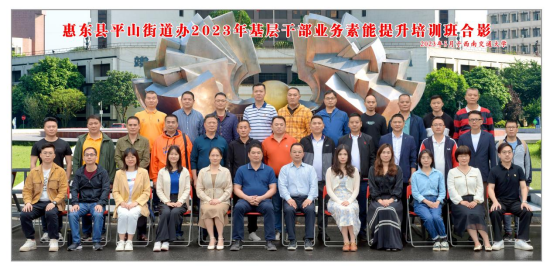 2023年5月22日上午, 惠东县平山街道办2023年基层干部业务素能提升培训班在MK体育九里校区顺利开班。开班式议程上平山街道办人大工委主任刘伟东做动员讲话,四川省干部教育培训MK体育基地副主任陈一致辞。本次培训旨在强化街道干部意识,让街道干部要适应新形势,提升街道干部的政治素养、高效业务能力。本次培训设置了“专题课程 县城老街建设、村镇旅游建设及经营、危机处置与媒体应对、从管理到治理:地方政府创新的理念与过程”、“现场教学 新农村建设示范村——战旗村”、“现场教学 武侯区玉林街道黉门街社区”等专题课程,课程设置动静结合,结构完整,内容饱满。