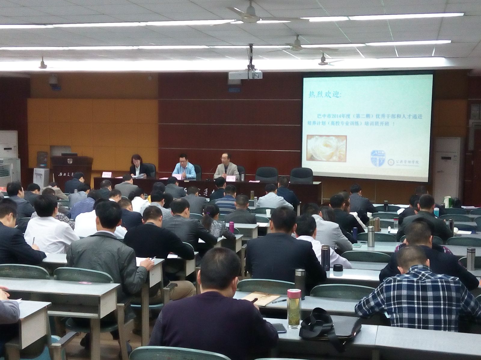 陈光经理在致辞中首先代表承训单位向参训学员表示了热烈的欢迎,并对巴中市委组织部的充分信任及大力支持表达了由衷的感谢。随后,陈经理简要介绍了公司的发展历史、办学特色、学科优势,以及在服务社会发展方面的具体做法和突出成就,同时也对学员提出了三点期望。期望学员将学习与巴中发展实际相结合,为实际工作应用而学习;期望学员将学习与职业生涯的提升相结合,全面提升个人综合素质;期望学员将学习与个人修为相结合不。最后,陈经理希望学员能够珍惜此次学习机会,努力学习、学有所获,勤于思考、思有所悟,积极推动巴中市经济社会发展再上新台阶。